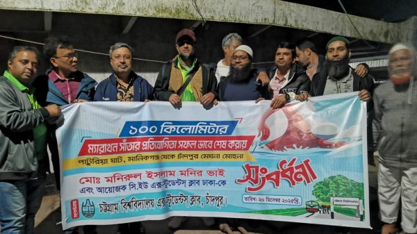 প্রমত্তা পদ্মায় ১০০ কিলোমিটার আল্টা ম্যারাথন সাঁতার সম্পন্ন করা মনির হায়দার এর সংবর্ধনা।