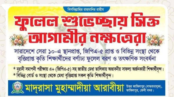 ২৯টি বৃত্তি নিয়ে ফেনীর শীর্ষে “মাদ্রাসা মুহাম্মাদীয়া আরাবীয়া”, লস্করতালুক, ফাজিলপুর।
