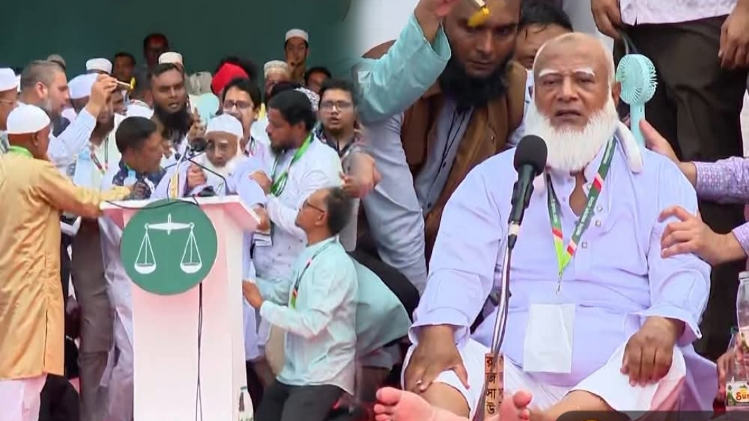 বাংলাদেশ জামায়াতে ইসলামীর জাতীয় মহা সমাবেশের মঞ্চে বক্তৃতা কালে অসুস্থ হয়ে পড়ে গেলেন জামায়াত আমীর, ডাঃ নিষেধ করা সত্ত্বেও বসে বসে বক্তৃতা চালিয়ে গেলেন।