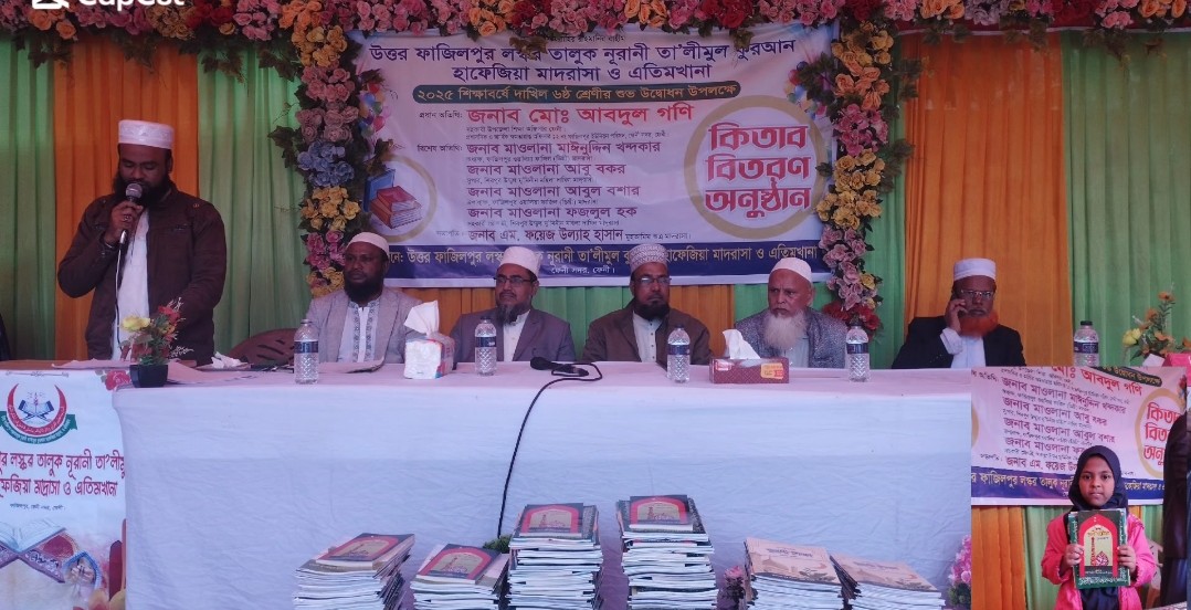 অদ্য ২রা জানুয়ারী ২০২৫ "উত্তর ফাজিলপুর লস্কর তালুক নূরানী তা'লীমুল কুরআন হাফেজিয়া মাদরাসা ও এতিমখানা" এর আয়োজনে ২০২৫ শিক্ষাবর্ষে দাখিল ৬ষ্ঠ শ্রেণীর শুভ উদ্বোধন ও কিতাব বিতরন অনুষ্ঠান অনুষ্ঠিত হয়।